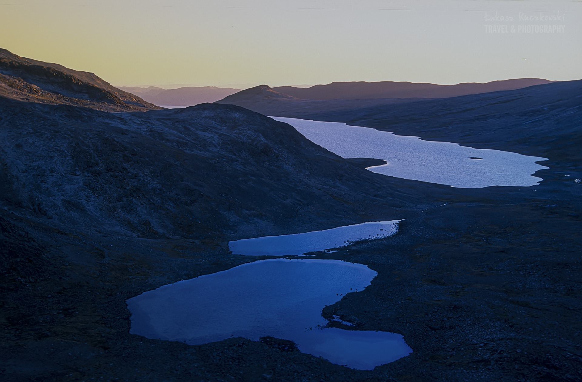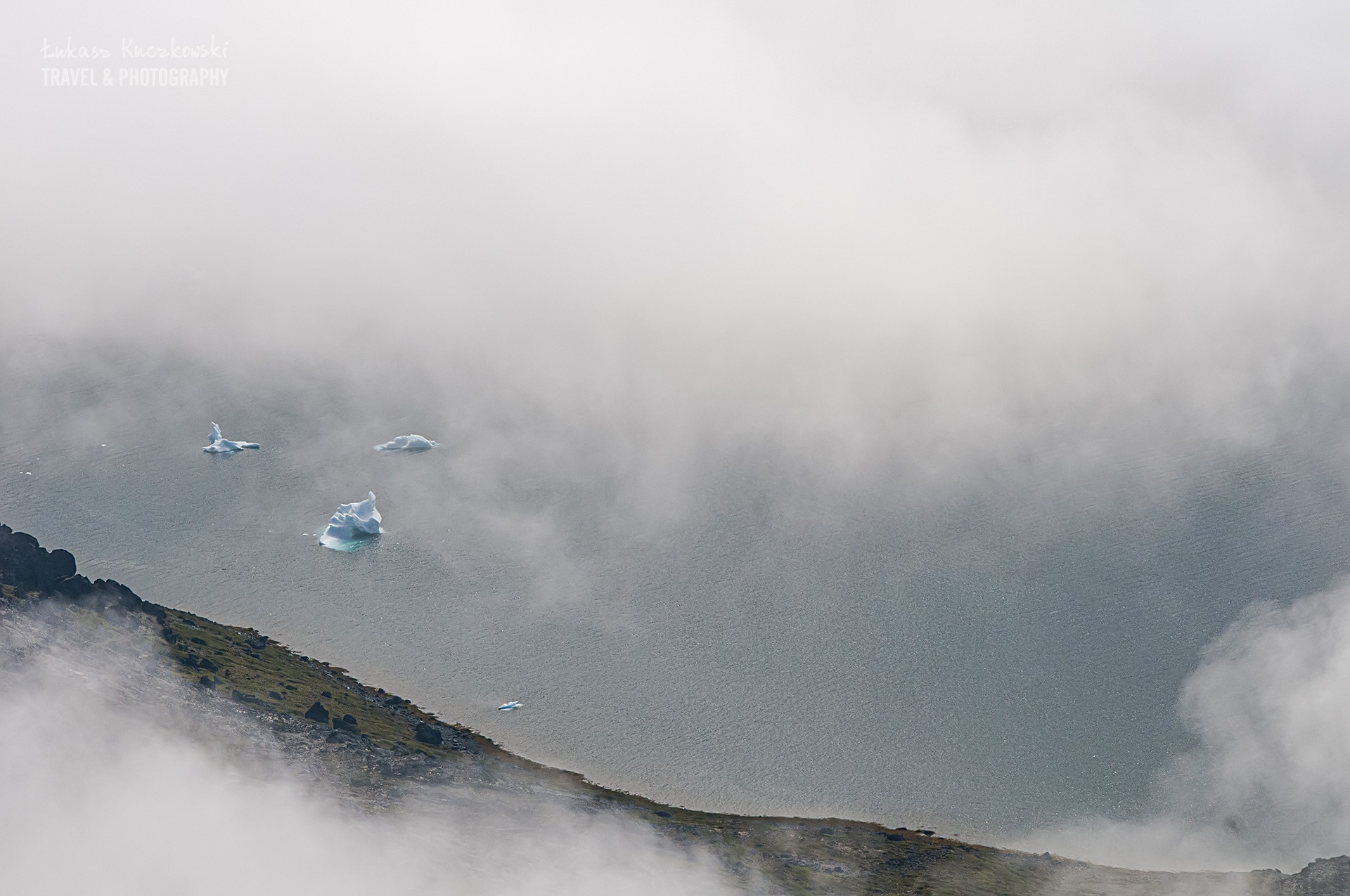 Kiedy Adam się obudził zastanawiamy się co robić. Chmury się cofnęły, ale ciągle są widoczne na horyzoncie nad morzem. Może przyjdą jutro jeszcze raz. Ślęczą nad mapą i rozważam wszelkie możliwości. Decydujemy się ostatecznie zostać jeszcze jeden dzień na miejscu. Co prawda kolejnego dnia będziemy musieli przejść cały szlak obliczony na dwa dni, ale trudno. Z mapy wynika bowiem, że jeśli wyjdziemy dzisiaj w kolejnej bazie nie będziemy mieli tak szerokich widoków. Szczególnie, że będziemy niżej niż otaczające nas góry. Tak więc postanawiamy zaryzykować i poczekać na chmury. A nuż przyjdą. To wtedy nam wszystko wynagrodzą.