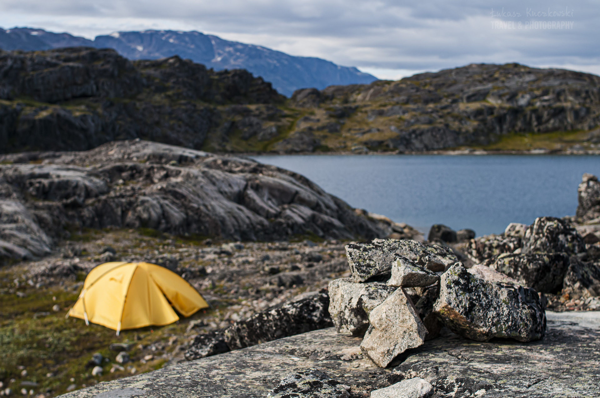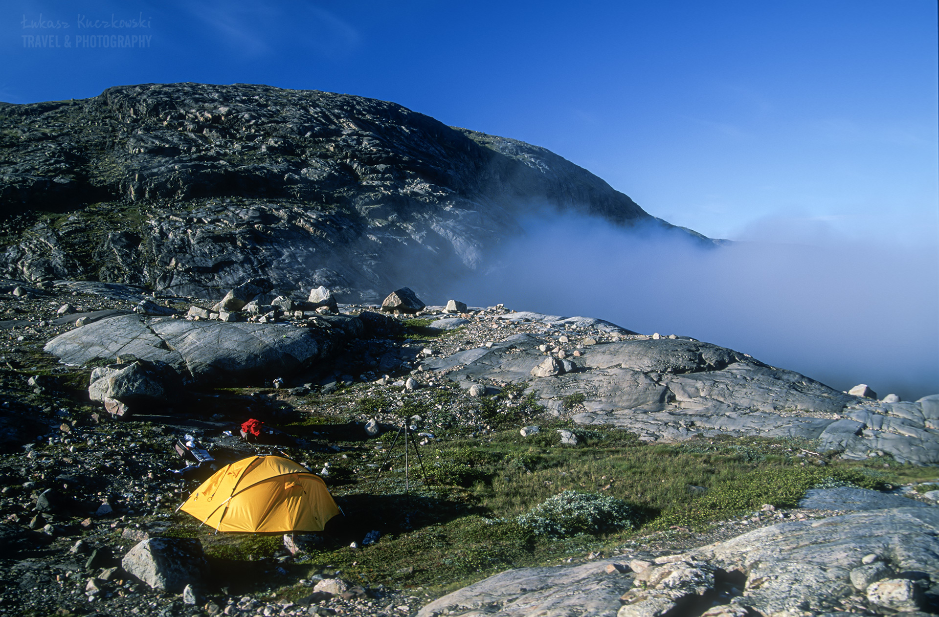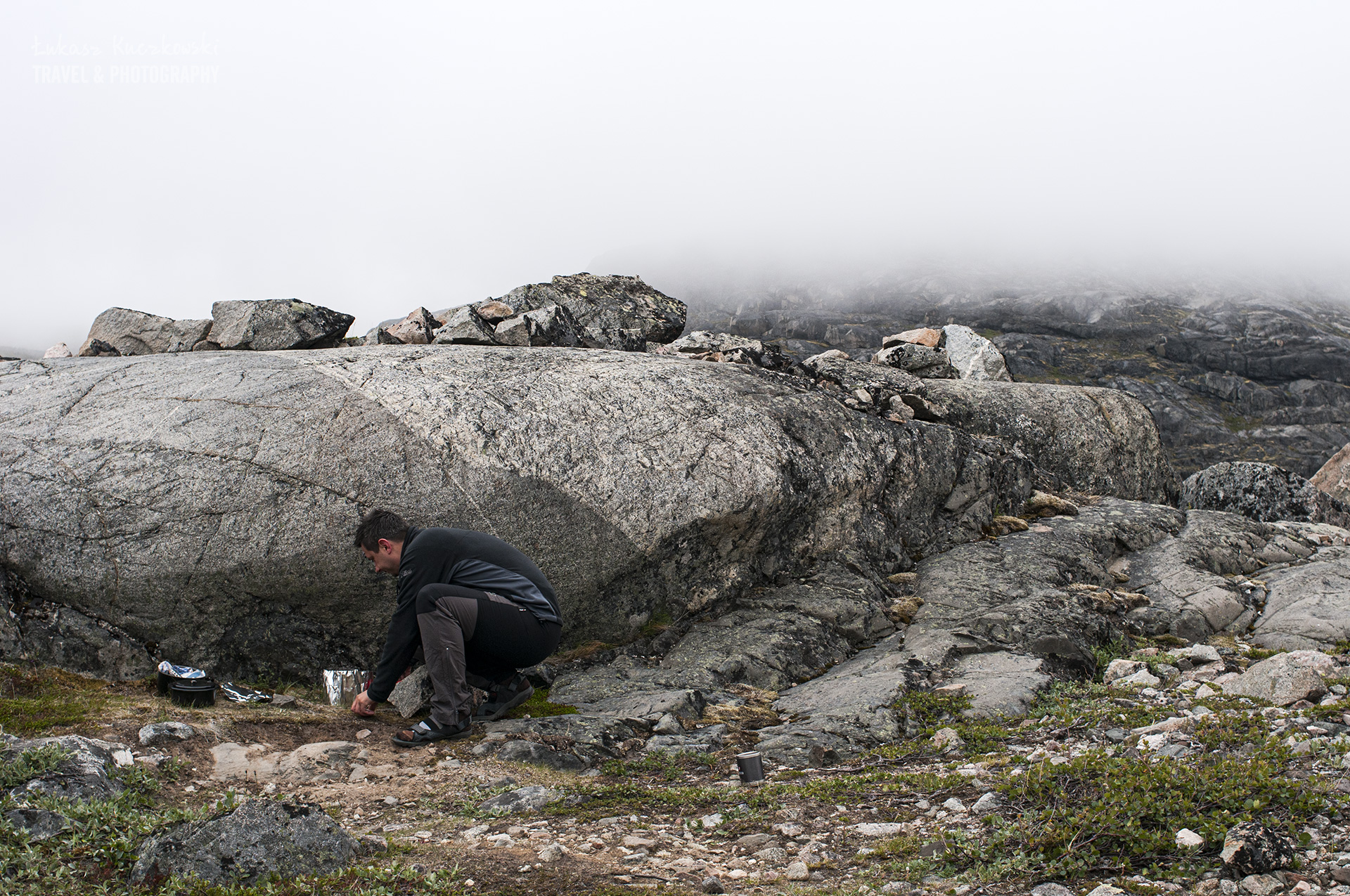 Rozbijamy nasz namiot – po raz pierwszy na ziemi Grenlandii. Konsumujemy nasze pierwsze posiłki – będą nam towarzyszyć przez prawie cały następny miesiąc.