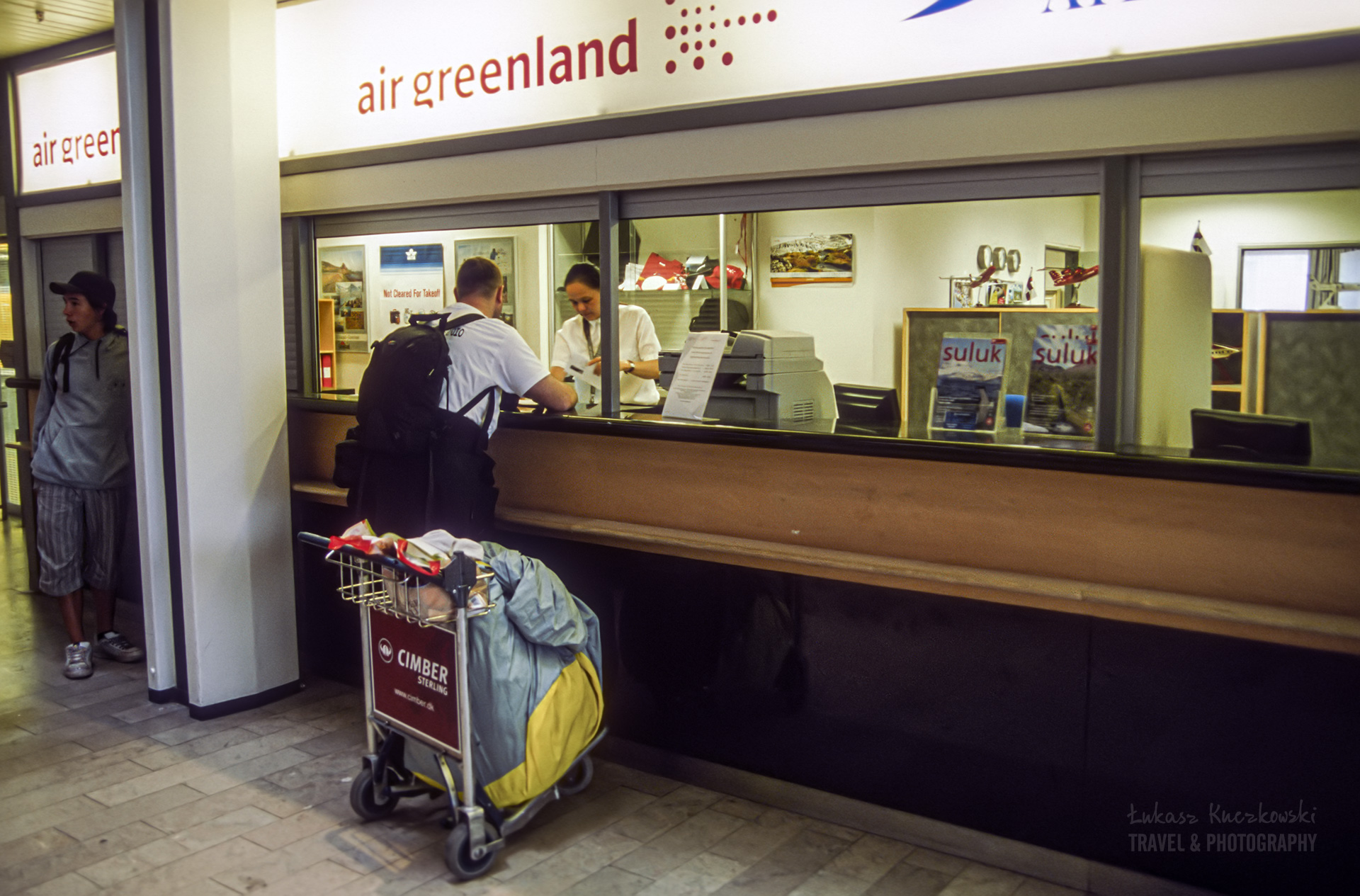 Lecimy AirGreenland, aczkolwiek samolot ma barwy AirFinnland. Być może jakiś czarter. Tym razem na security check udaj mi się przekonać miłą panią do manualnego sprawdzenia wszystkich slajdów. Trochę to trwa, bo slajdów jest dużo, a miła pani sprawdza każdy slajd :-). No ale wszystko okazuje się w porządku i mogę kontynuować podróż.