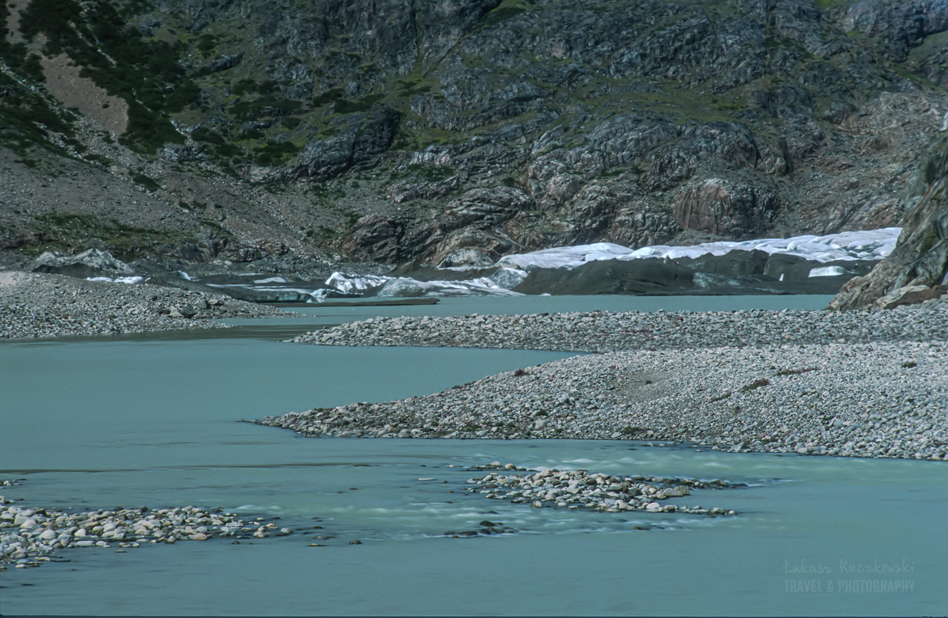 Wokół nas wznoszą się wzgórza. Lodowca jeszcze nie widać, ale gdzieś tam niedaleko topi się pod wpływem słońca i swojego własnego ciężaru. Woda w jeziorku nieprawdopodobnie czysta. Bardzo dobrze smakuje.